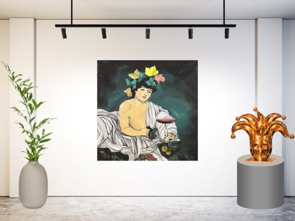 De rijke kleuren, vloeiende stoffen en expressieve houdingen doen denken aan mythologische of historische taferelen. Het schilderij straalt kracht, mystiek en verfijning uit en trekt direct de aandacht.