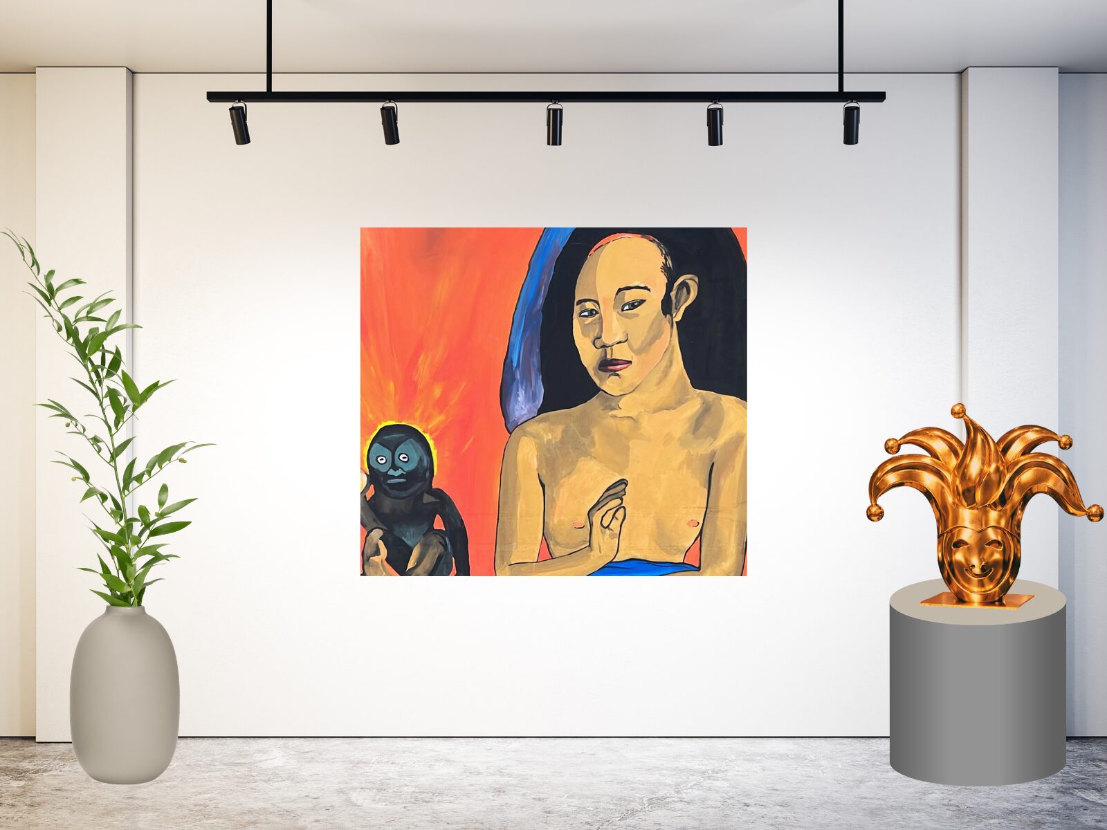 De combinatie van felle kleuren, duidelijke contouren en vereenvoudigde vormen zorgt voor een krachtige, bijna moderne interpretatie van figuratieve kunst. Het werk trekt direct de aandacht en roept nieuwsgierigheid op bij bezoekers.