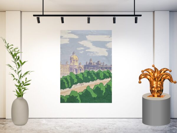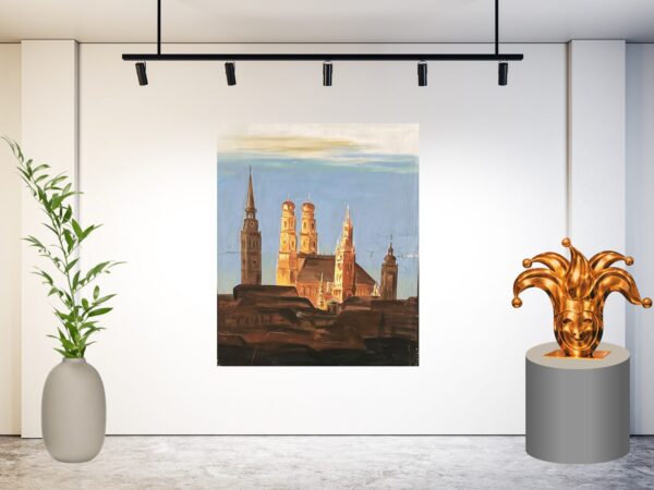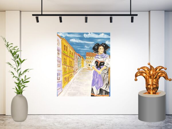 De lichte en schaduwrijke delen in het straatbeeld zorgen voor diepte en een warme vakantiesfeer. Het schilderij roept het gevoel op van een zomerse avondwandeling door een oud stadje, waar geschiedenis en gezelligheid samenkomen.