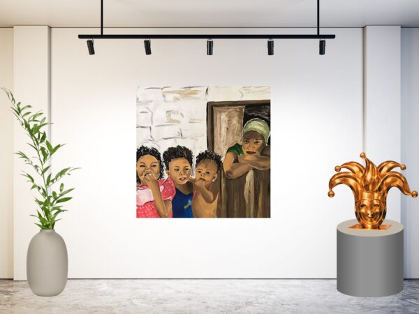 De combinatie van het gedetailleerde portret op de voorgrond en de subtiele woestijnscène op de achtergrond zorgt voor diepte en verhaal in het kunstwerk. Het schilderij straalt avontuur, mystiek en cultuur uit.